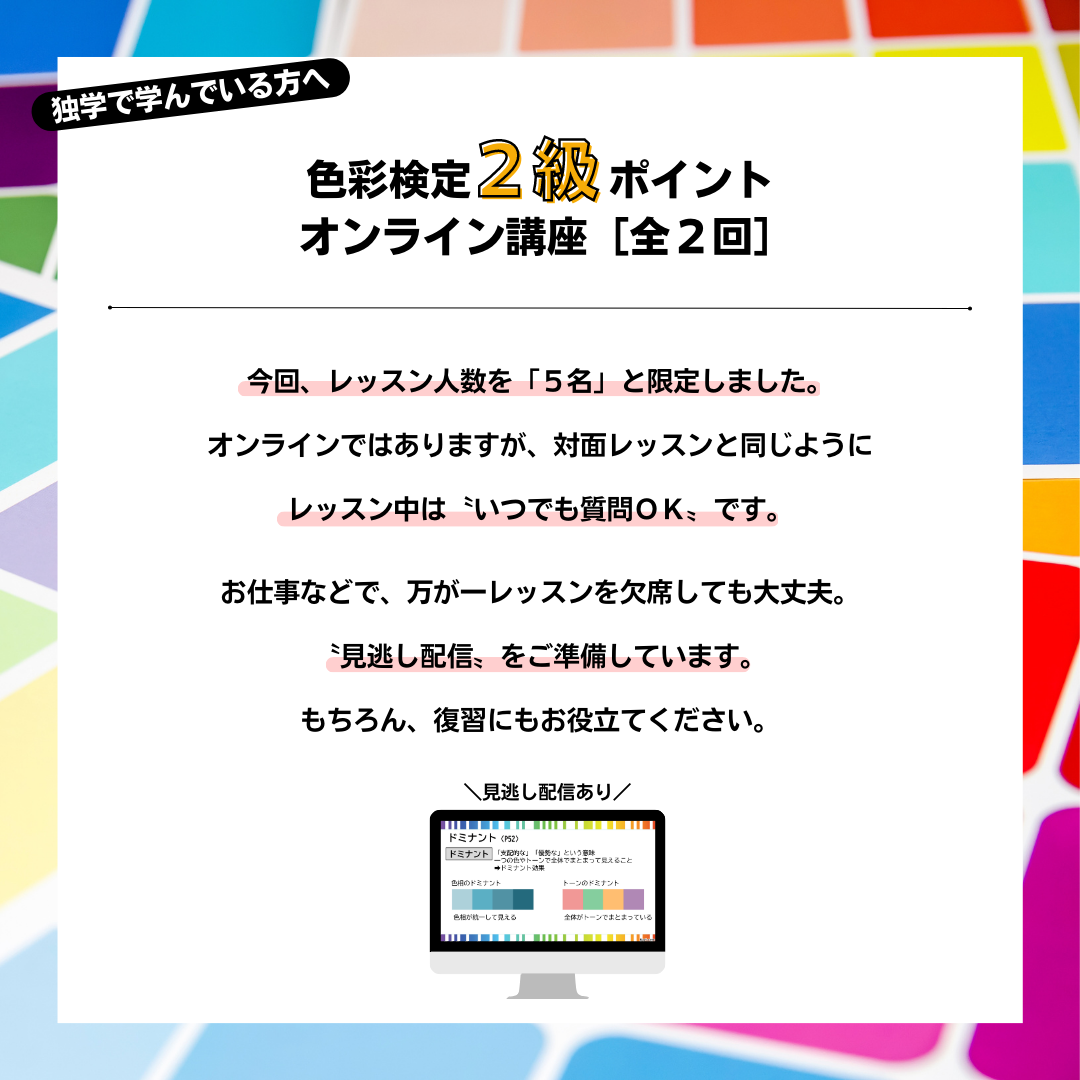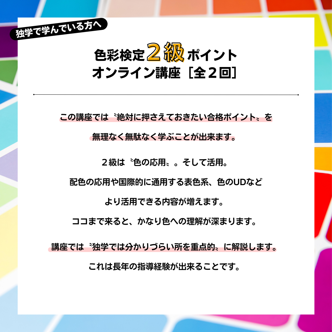 | 講座名 | 色彩検定2級ポイントオンライン講座[全2回] | |